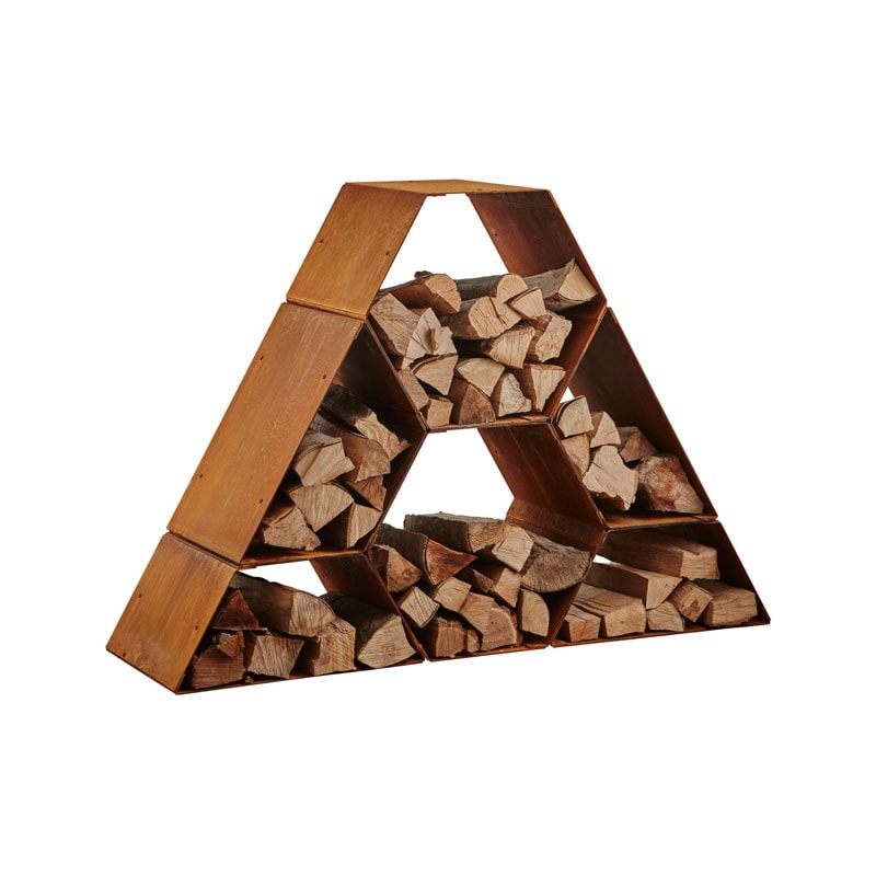 Slip for bunker af brænde på terrassen eller græsset. HETA Hexagon og Trapez holder styr på dit brænde, og samtidig får du en smuk skulptur i haven. Hexagon kan også bruges som bord eller bænk. Ligesom HETA Tipi er brændeholderne lavet i Cor-Ten stål, der med tiden får en fantastisk, rustrød farve.