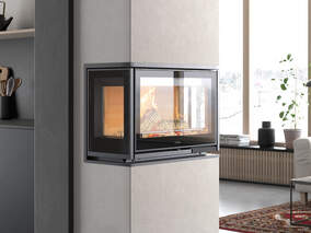 Takket være materialets varmeisoleringsevne er det desuden muligt at placere ildstedet direkte op ad en brændbar væg. Låge med indramning af støbejern giver ildstedet et robust og klassisk udseende.