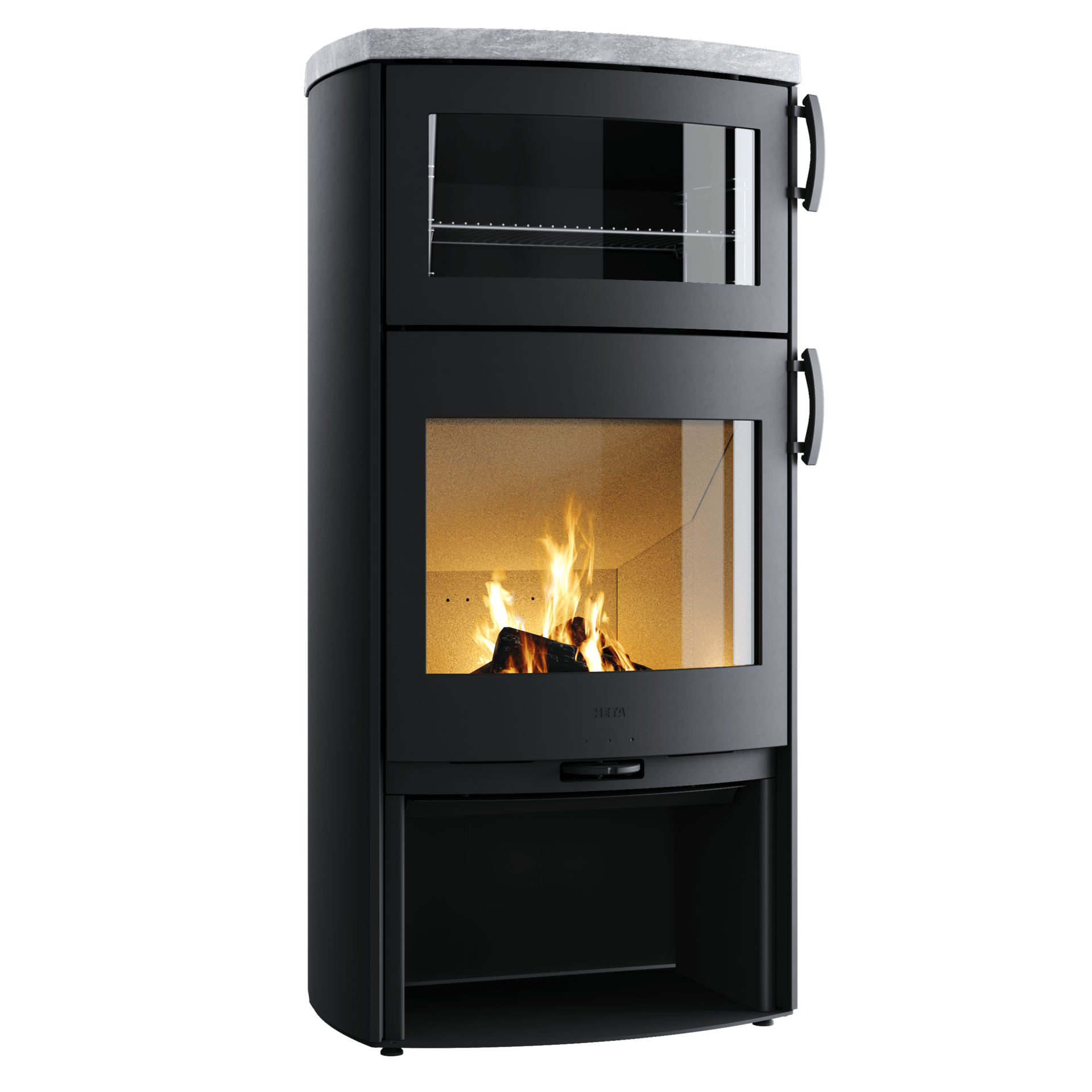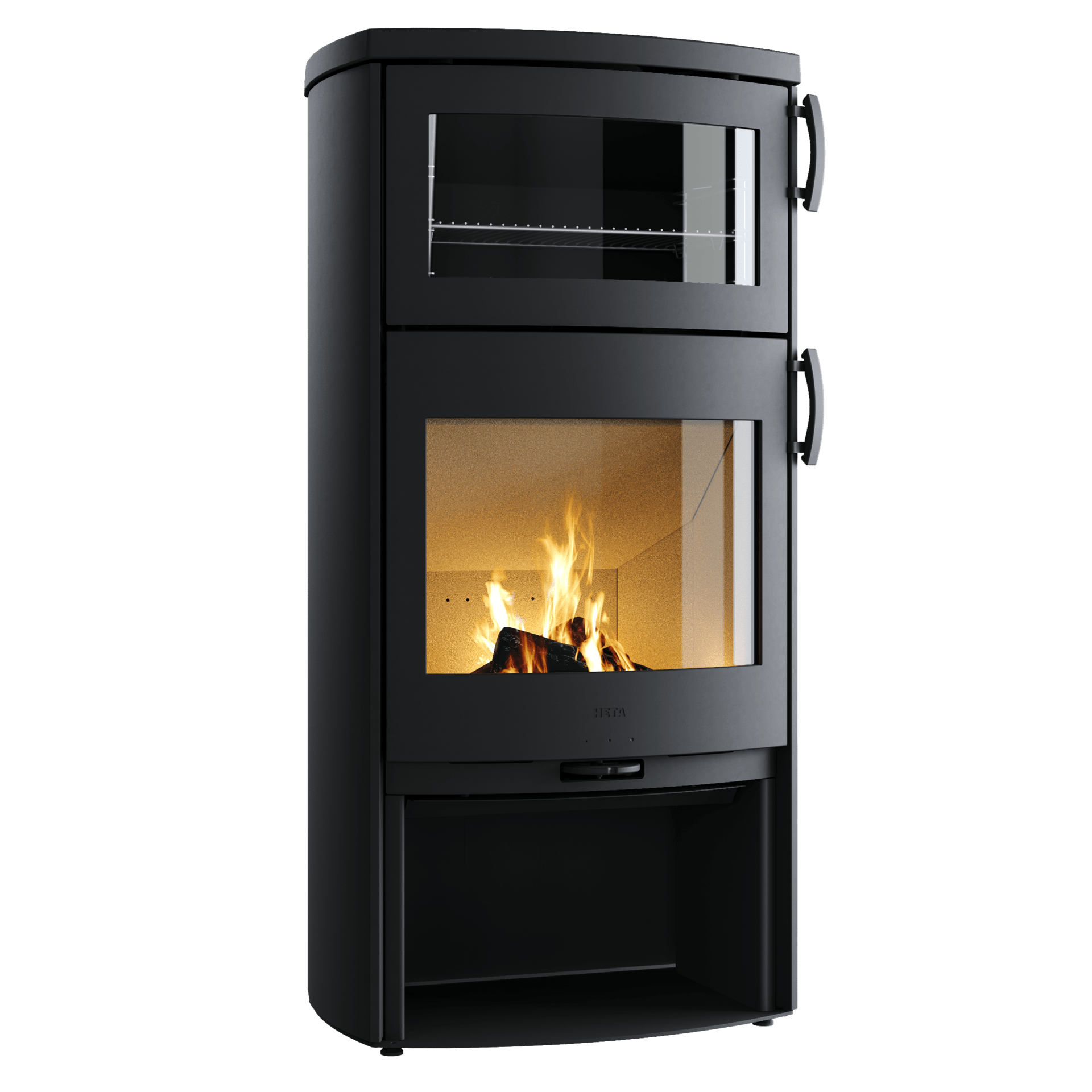 ud i alle kroge. Brændeovnen er udstyret med en stor bageovn
