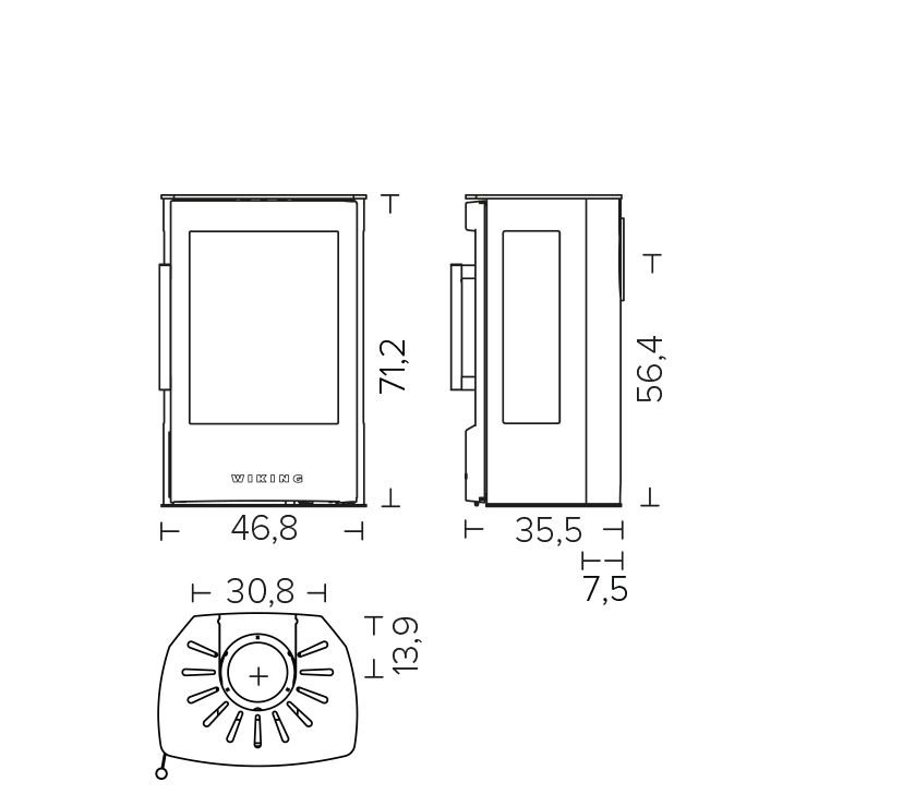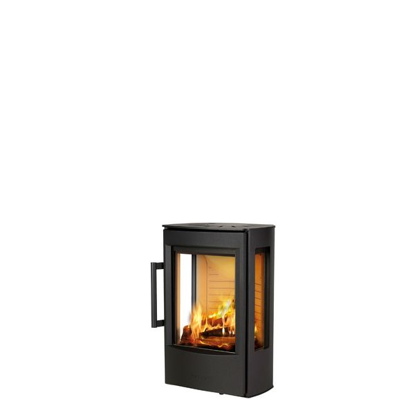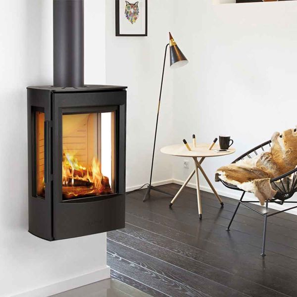 Gennem WIKING Miros brede sideglas og den store glasrude i den robuste støbejernslåge er der rig mulighed for at se flammerne i det åbne og lyse brændkammer. Let skrå vinkler bagpå fremhæver udseendet af WIKING Miro – ikke kun på en jævn væg, men også i et hjørne.