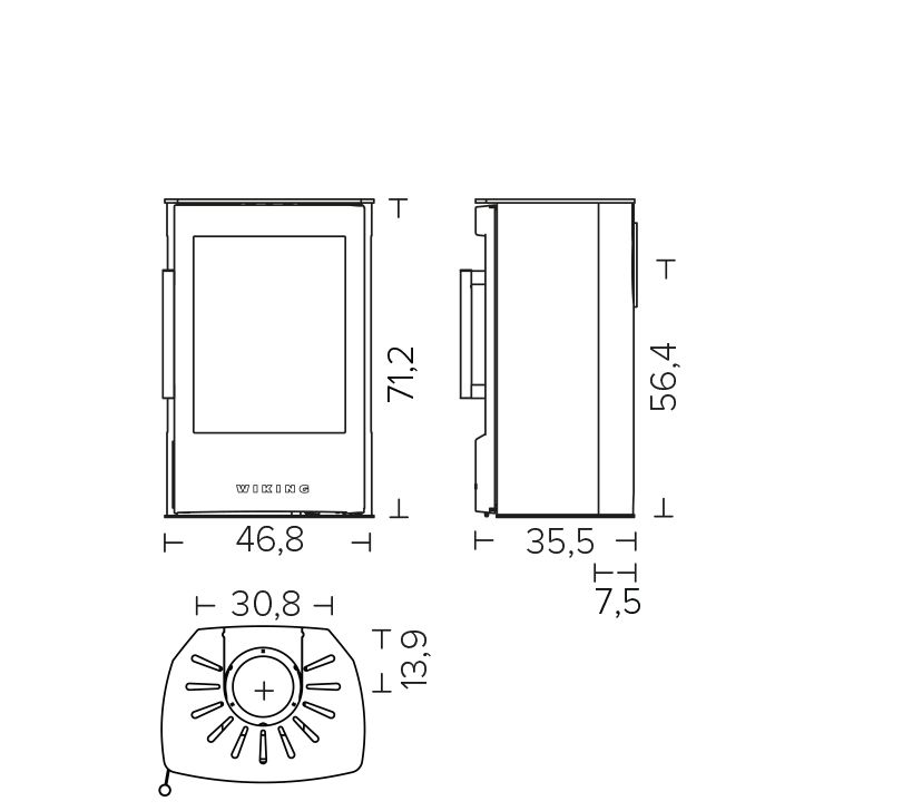 Alle WIKING Miro modeller har en stor glasrude i en kraftig støbejernslåge. Hertil har WIKING Miro 1, WIKING Miro 3 og WIKING Miro 5 brede sideglas, der giver rig mulighed for at betragte flammerne fra flere sider.
